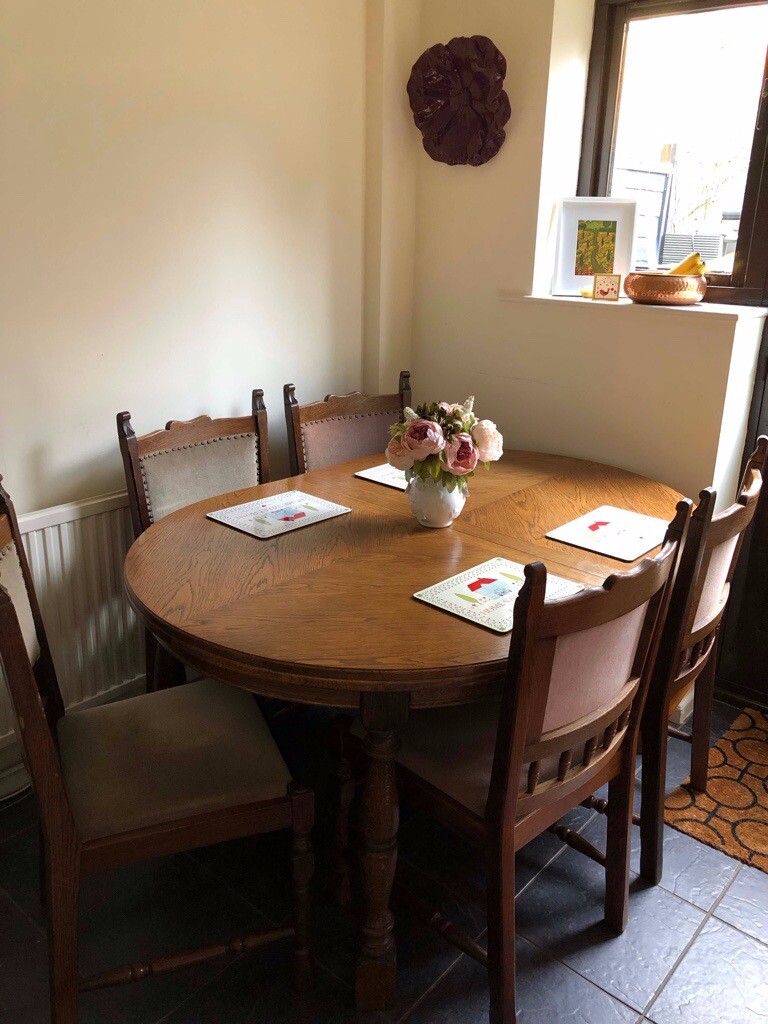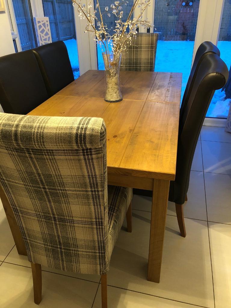 Stay updated about chunky solid oak dining table and 6 chairs.