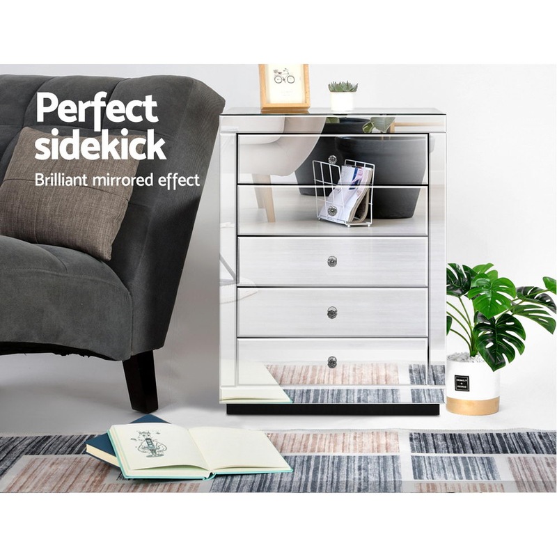 The compactness of the 5 drawer grey tall boy drawers makes it the perfect size for use in a guest bedroom or for additional storage in the master bedroom. Factory wholesale furniture mirrored tallboy chest of drawers. Buy chest of drawers, tallboys, tall boy dressers, wardrobes and more to match your bedroom! Howard elliott 5 tiered mirrored dresser dresser with mirror. Songmics nightstand, industrial bedside table with 2 fabric drawers, storage shelves, vertical dresser storage tower with wooden top, metal frame, labels, rustic brown and black ulvt03h.